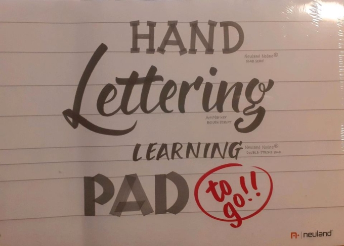 Spiralblock mit 100 Blatt - Inhalt, bedruckt mit Hilfslinien und Schreibübungen für Überschriften, Text und Kalligraphie.