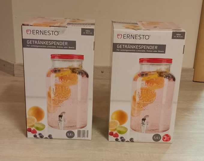 Ich biete Ihnen zwei Getränkespender mit einem Fassungsvolumen von 5L zum Verleih an.