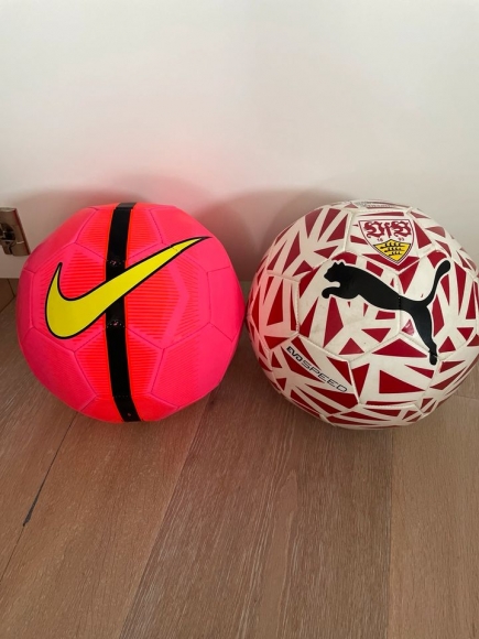 Die 2 Nike Fußbälle sind neu und unbenutzt, der Puma Fußball wurde in der Wohnung genutzt.