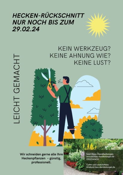 Gärtner bietet Heckenrückschnitt an nur noch bis zum 29.02.24