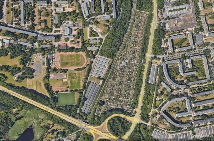 Naumburger Strasse 15. Liegt zwischen Sportplatz, S-Bahn und Kleingarenverein "Am Zollrain".