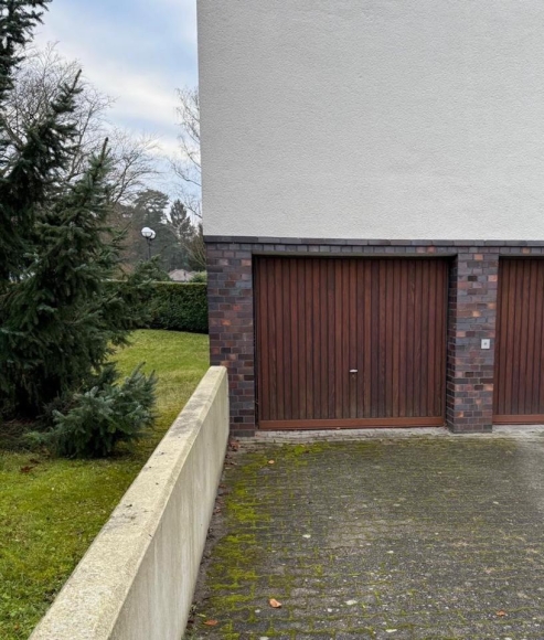 Einzelgarage als Stellplatz mit elektrischen Tor; auch für Utensilien oder Regal Platz; vor der Garage Möglichkeit zu parken oder Auto zu waschen.