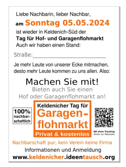 Garagenflohmarkt Keldenich Süd 05.05.2024