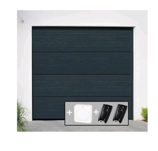ARON Basic Garagentor Sektionaltor 40 mm L-Sicke Slategrain RAL 7016 anthrazitgrau 2500x2125 mm inkl. Garagentorantrieb, 2 x Zweikanal-Handsender, Innentaster IT1-1b