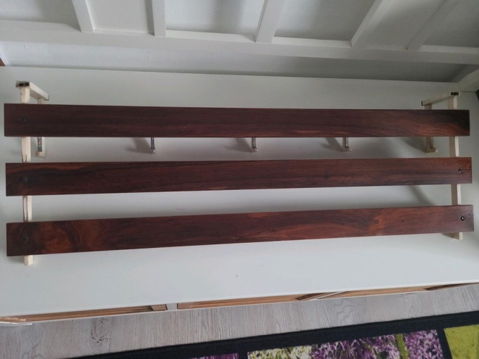 Wunderschöne Garderobe Mahagoni aus den 60er Jahren Vintage in einem super Zustand..Streben aus Holz tolle Maserung..das Gestell aus Metall..oben Ablage..5 Kleiderhaken..Breite ca. 80 cm..Tiefe ca. 28 cm..hinten an der Wand ca. 9 cm Höhe .Privatverkauf ohne Garantie und Umtausch
