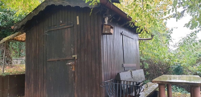Im Garten ist ein Walnussbaum und ein paar Äpfelbäume.