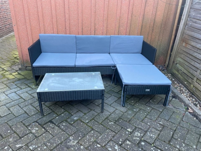 Ohne Mängel. Die Möbel standen draußen, daher ist es möglich das an der ein oder anderes Stelle etwas Grünspan ist, was aber so entfernt werden kann.