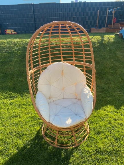 Gartenstuhl aus Rattan. Drehbar. Polster müsste mal gewaschen werden