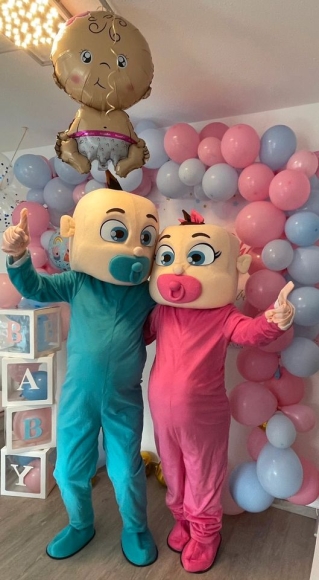 Gender Reveal Maskottchen / Dolls, Boy or Girl Kostüm, Babyshower
