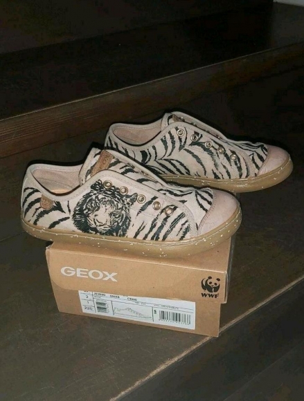 wir verkaufen ein Paar Slip-On-Sneakers von Geox in der Größe 34 (in Zusammenarbeit mit WWF für die Erhaltung der Tierwelt). Aus nachhaltigeren Materialien hergestellt.