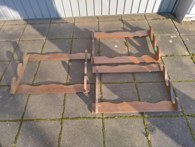 Gewehrständer aus Holz, für 3 Gewehre o.ä., 3 Stück je 18,-