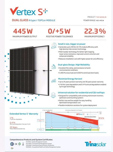 Glas-Glas Solarmodul! Trina Vertex S+ 430W TSM-NEG9R.28
