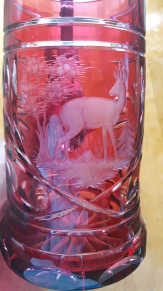 Glaskrug von Zwiesel aus Bodenmais, mit einem schönen Wildmotiv geschliffen.