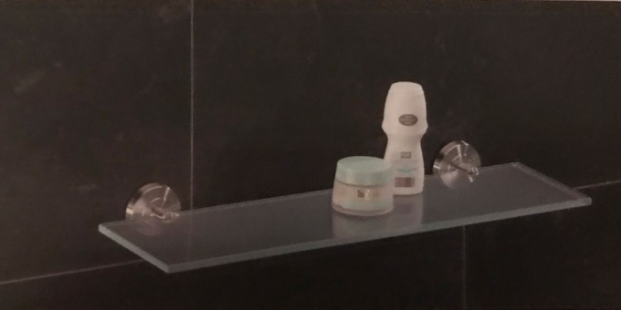 Material: aus hochwertigem Edelstahl und satiniertem Glas 8mm stark. Belastbar bis zu 3 kg.