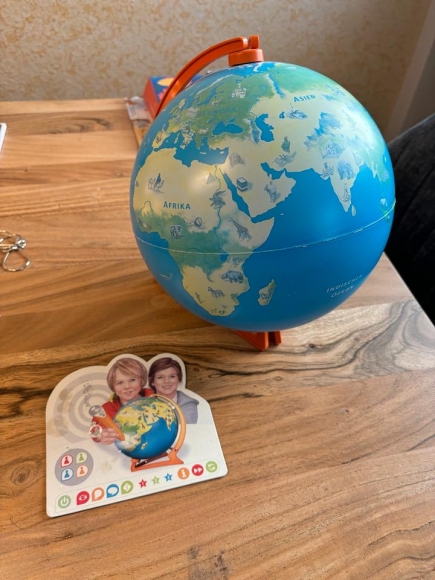 Der Stift erweckt die Kontinente zum Leben und vermittelt dabei kindgerechtes Wissen über Menschen, Tiere, Bauwerke und Landschaften. Durch Quiz- und Suchaufgaben in drei Schwierigkeitsgraden vertiefen die Kinder, was sie bei ihrer Reise um den Globus gelernt haben. Die zwei Halbschalen des Globus werden einfach und schnell zusammengesteckt. Im mitgelieferten Drehständer steht er stabil und dekorativ.