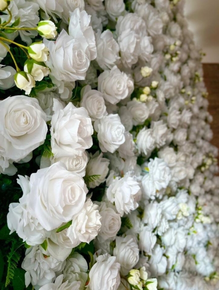 Unsere exklusive Wand aus weißen Rosen ist mehr als nur Dekoration – sie verkörpert Eleganz, Stil und Einzigartigkeit.