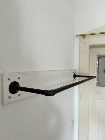 Die Stange ist ca. 30 cm von der Wand entfernt. Sie hat einen Durchmesser von 3cm.