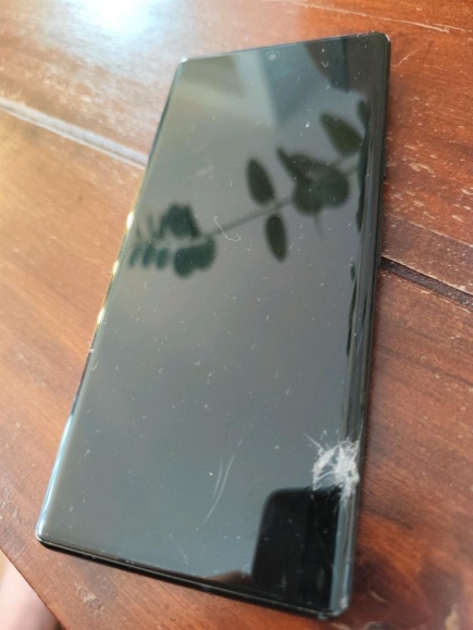 Das Handy geht noch an.. Durch den Sturz funktioniert nur die Touch Funktion nicht mehr.. Gesplittert und am unteren Bereich zeigt ein Weißer Streifen durch
