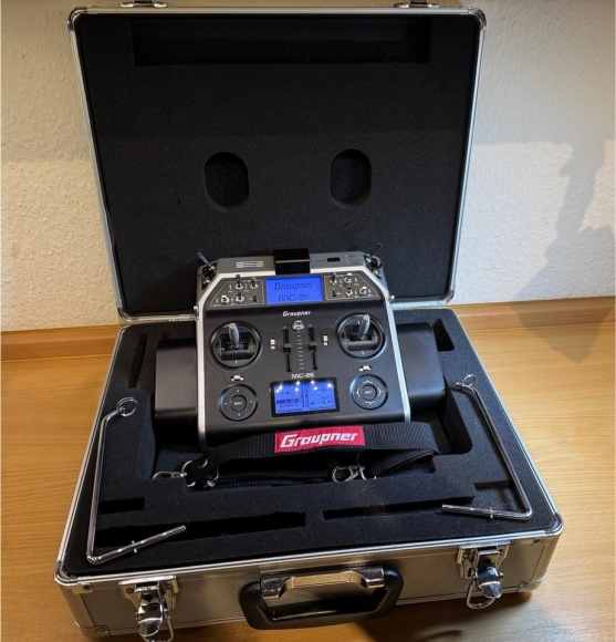 Mit dabei ist der Graupner Alukoffer, ein Graupner 5000er LiIon Senderakku, Umhängebügel und Graupner Umhängeriemen, und div. Kleinteile.