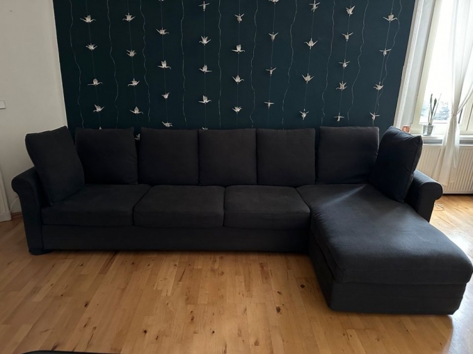 GRÖNLID - 4er-Sofa mit Récamiere Sporda dunkelgrau