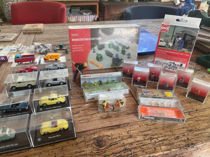 Ich biete hier eine umfangreiche Sammlung an Modellbau-Zubehör, Figuren und Modellautos zum Komplettpreis an. Alles stammt aus gepflegtem Nichtraucherhaushalt, viele Teile sind originalverpackt und neuwertig – ideal für H0-Modelleisenbahn, Dioramen oder Sammler:
