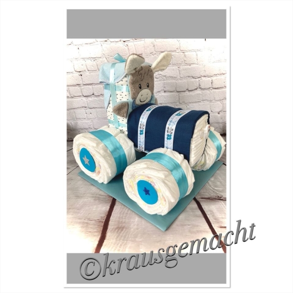 Großer Windeltraktor blau - Geschenk zur Geburt Baby Junge