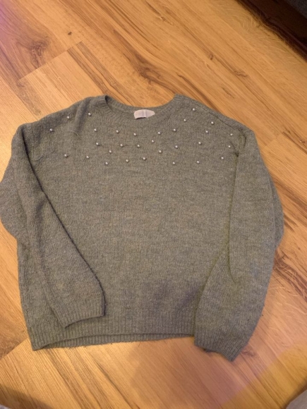 Grün/grauer Perlen Pullover Mädchen h&m
