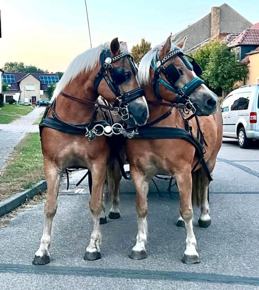 Bildschönes Haflingergespann Stuten ,sicher gefahren suchen wegen Krankheit des Besitzers neue Aufgabe .