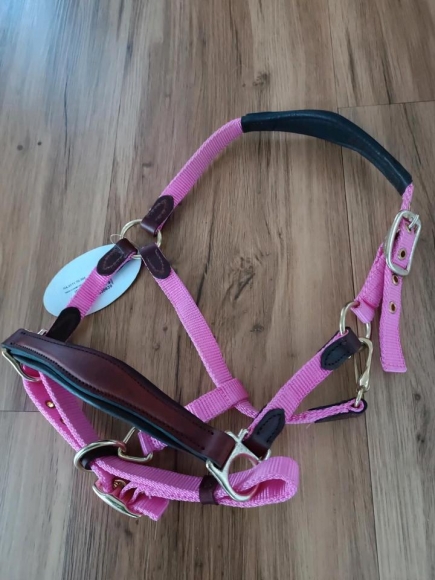 Zu verkaufen ist ein neues Halfter in halb Nylon halb Leder. Genick und Nase sind aus braunem Leder welches schwarz unterlegt ist. Größe: Shetty