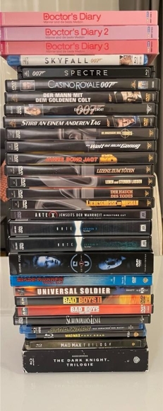 Ich biete hier diese 29 DVD/ Blu Ray Titel von verschiedenen Filmtiteln und Filmreihen, sowie Fernsehserien an. Die genauen Filmtitel entnehmt bitte dem BildAlle Boxen wurden auf Inhalt geprüft. Es fehlt lediglich eine Disc bei Doctors Diary 3. Ansonsten sind alle Boxen vollständig. Alle Datenträger und Boxen haben Nutzungsspuren und Lagerspuren. Es kommt alles aus einem Nichtraucherhaushalt. Die Filme werden nur komplett abgegeben. Preis verhandelbar. Der Versand erfolgt versichert per DHL.
