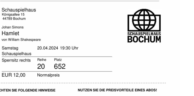 Karte für die ausverkaufte Vorstellung am 20.4.2024 zu verkaufen.