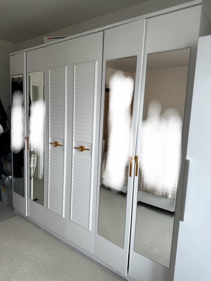 Ich verkaufe einen stilvollen und sehr gut erhaltenen Kleiderschrank in elegantem Weiß mit goldfarbenen Griffen und Spiegelelementen. Der Schrank bietet viel Stauraum und passt durch sein zeitloses Design in jedes Schlafzimmer.