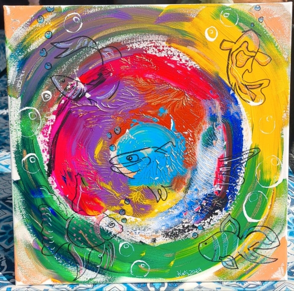 Handgemalt Leinwand, Gemälde Fische, Regenbogen