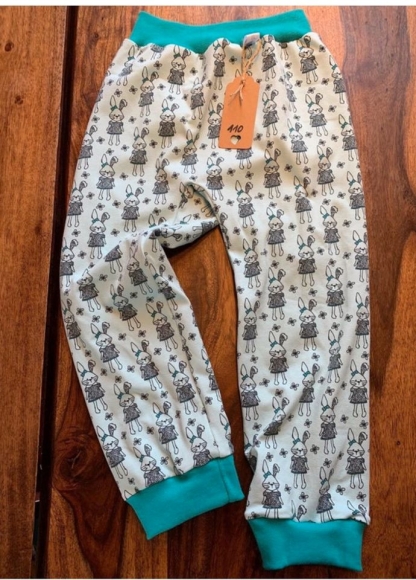 Handmade Pumphose Gr. 110 Hasen Ostern Türkis *neu*