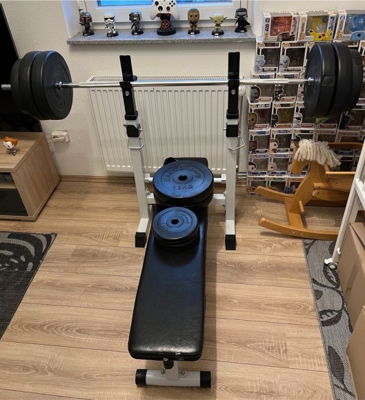 Angeboten wird eine Hantelbank die Gebrauchsspuren aufweist. (Siehe Fotos)