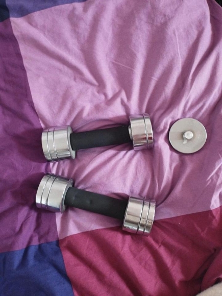 Das einzige Manko ist wie im Bild zu sehen, dass auf der einen Seite sich der eine Bereich nicht abschrauben lässt (also es sind immer 3 Teile und der zweite Teil lässt sich bei einer Hantel auf einer Seite nicht abschrauben), vielleicht schafft es aber jemand.