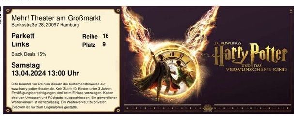 Harry Potter und das verwunschene Kind 2 Eintrittskarten