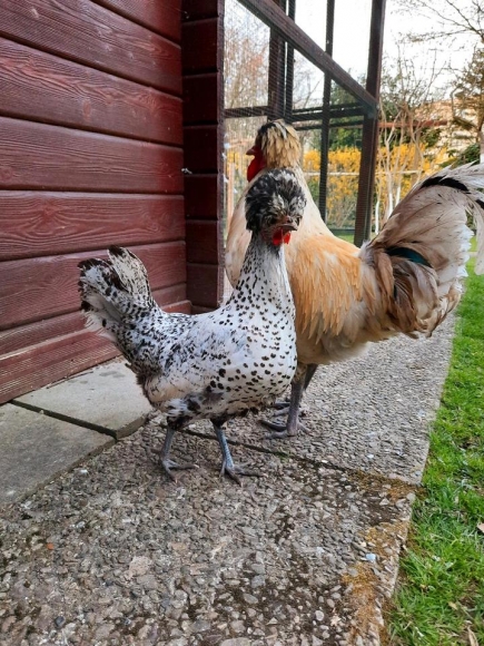 Habe noch zwei Haubenhühner vom letzten Jahr abzugeben. Es handelt sich um einen Hahn und eine Henne.