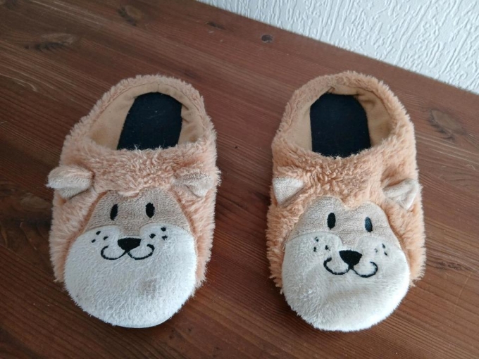 Hausschuhe Kinder beige Löwe Tiger Gr. 33 22 cm Sohle