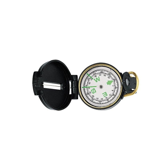 Herbertz Scout-Kompass mit Flüssigkeitsdämpfung, Vergrößerungsglas im Sucher und drehbarer Skala. Alle wichtigen Punkte sind mit Leuchtfarbe belegt. Mit kombinierter Teilung 360 Grad / 64 Strich. Das Gehäuse ist aus Kunststoff. Maße: 7,2 x 5,3 x 2,4 cm