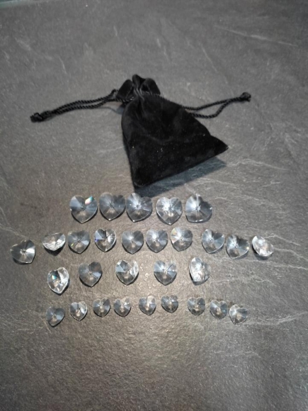 Herz Glas Glücksbringer Kristall Herzen in Samtsäckchen 29 Stück