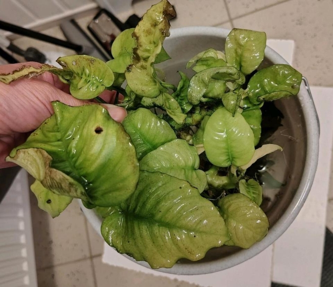 Aus Platzmangel in unserem kleinen Aquarium geben wir ein großeres Stück Anubius Pflanze ab. Sehr schön gewachsen. Unkompliziert in der Pflege. In normalem Leitungswasser bei etwa 22 C wuchs bei uns relativ schnell. Der abzugeben Teil ist etwas heller da er noch jung ist und direkt unter der Lampe wuchs. ich denke, er dunkelt bei besserem Standort schnell nach.