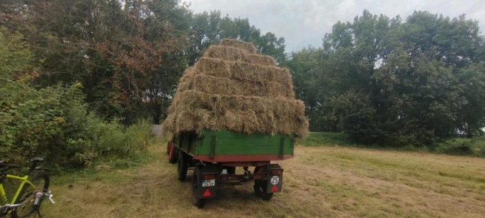 Biete kleine Bunde Heu Preis 3 Euro. Erster Schnitt 2024 ohne Jakobskraut.
