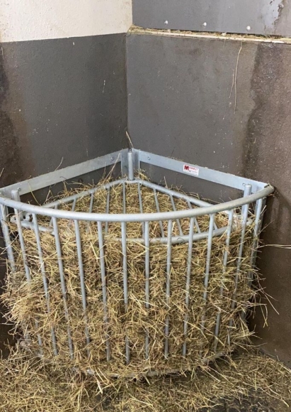 Diese ist sehr stabil und die Pferde fressen von oben und verrenken sich nicht den Hals wie bei anderen Raufen.