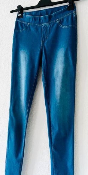 Treggings aus festen Jersey mit elastischem Bund und angedeuteten Hosenschlitz. Mit Ziertaschen vorne und echten Taschen hinten.