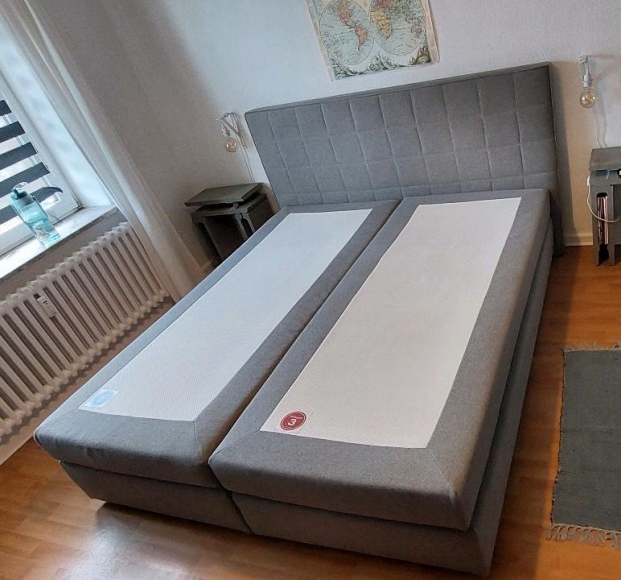 Verkauft wird ein hochwertiges stoffbezogenes Boxspringbett (ohne Matratzentopper so wie auf den Fotos abgebildet) zur Selbstabholung.