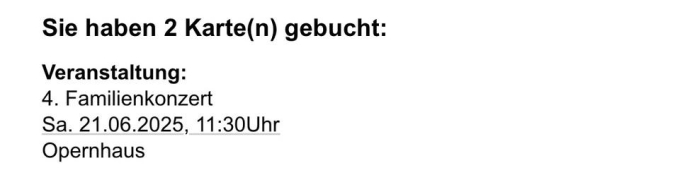 Familienkonzert 2xKarten Opernhaus Kiel 21.6.2025