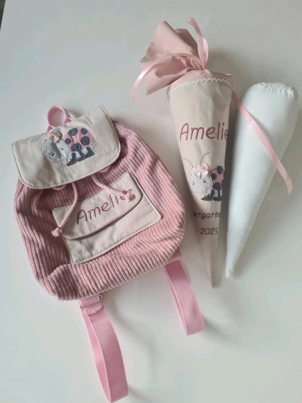 eine "Kindergartentüte" (ggf mit Inlett - 12 Euro - für die spätere Nutzung als Kuscheltüte) - ab 18 Euro