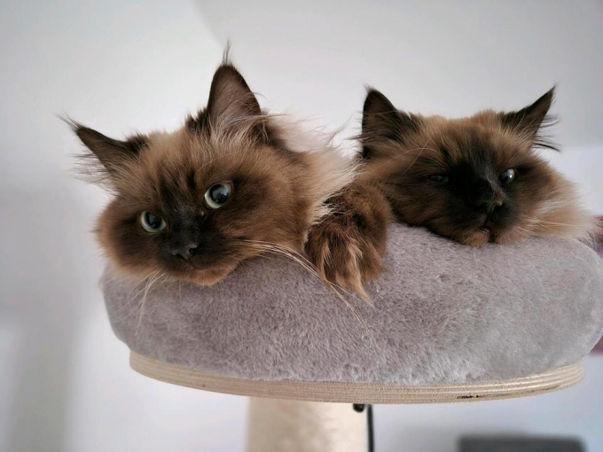Milo und Balu sind nicht nur optisch ein echter Hingucker mit ihrem seidigen, halblangen Fell, sondern auch charakterlich wahre Schätze. Sie sind sehr menschenbezogen, verschmust und verspielt, dabei aber auch sanft und ausgeglichen – ganz typisch für die Ragdoll-Rasse.