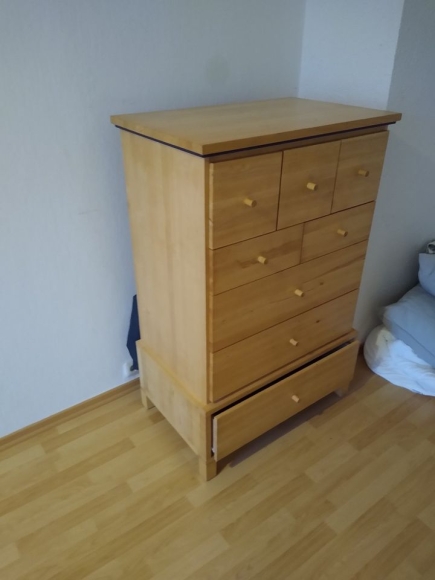 Die Komode ist in sehr gutem Zustand und hat einiges Fassungsvermoegen. Ich kann die Komode per Transporter innerhalb des Leipziger Westens anliefern (Schleussig, Zschocher, Plagwitz, Gruenau-Ost, Sudvorstadt, Kleinduncker, SuVo, Zentrum West), Aufpreis 10,- Euro. Lieferung in der zweiten Januarhaelfte. Selbstabolung natuerlich auch moeglich.